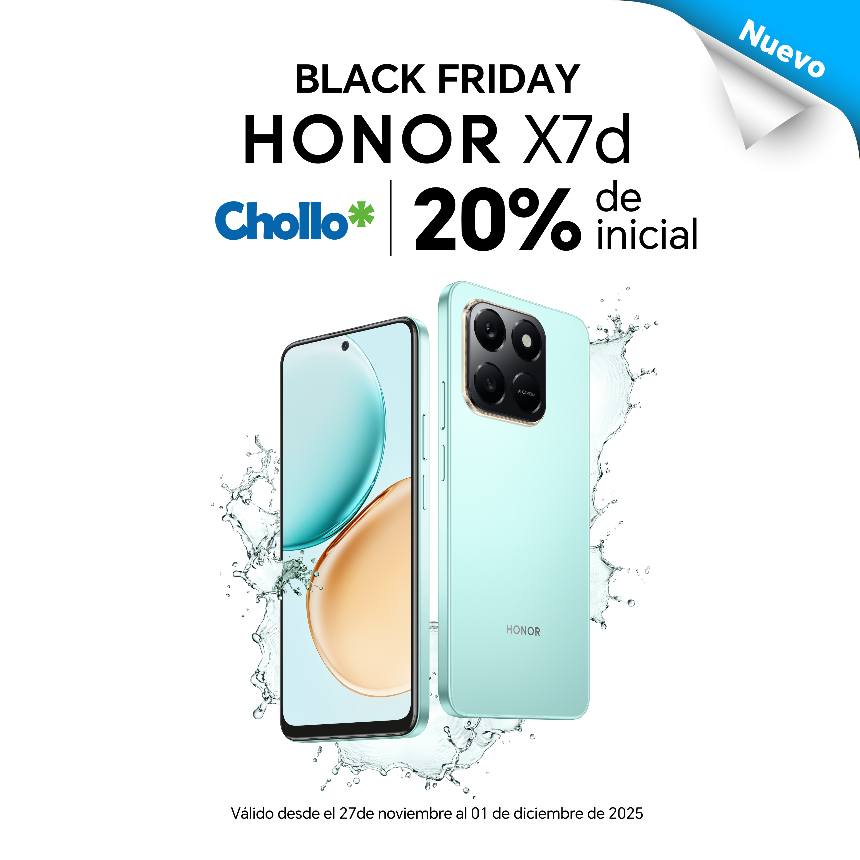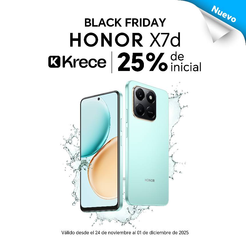 Esto permite que los usuarios lleven su HONOR X7d desde menos de $45 de cuota inicial, aprovechando el Black Friday y pagando el resto en cómodas partes. (El precio puede variar según la tienda o canal aliado.)