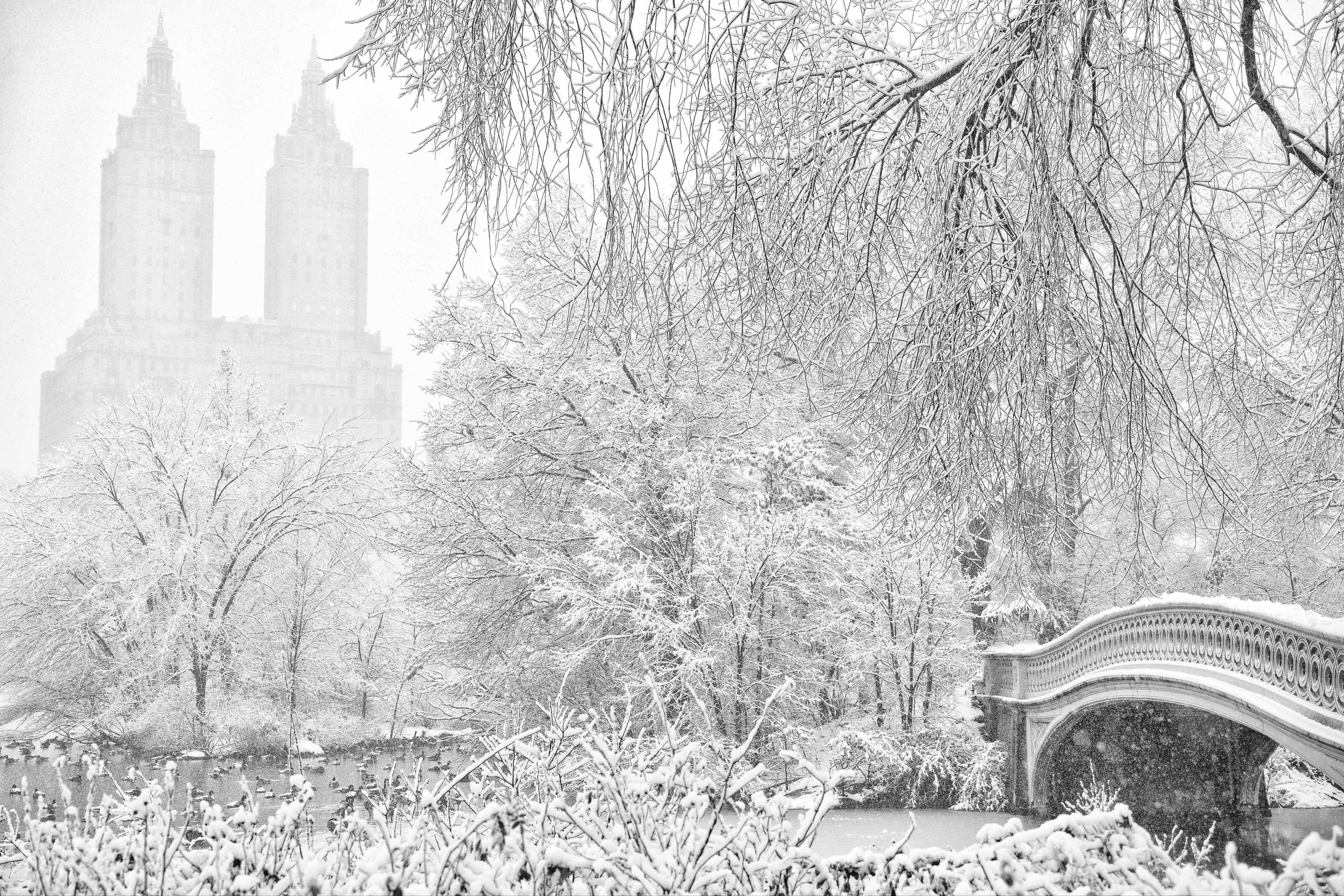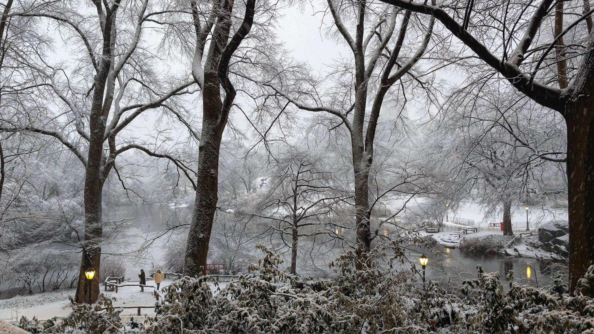 En medio de temperaturas heladas y fuertes ráfagas de viento, Central Park quedó vestido de blanco.