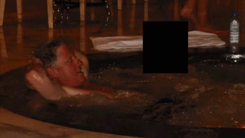 De acuerdo con la agencia de noticias EFE, en una de las imágenes difundidas por el Departamento de Justicia (DOJ, por sus siglas en inglés), Clinton aparece relajado en un jacuzzi, con los brazos detrás de la cabeza, acompañado por otra persona cuyo rostro fue censurado.