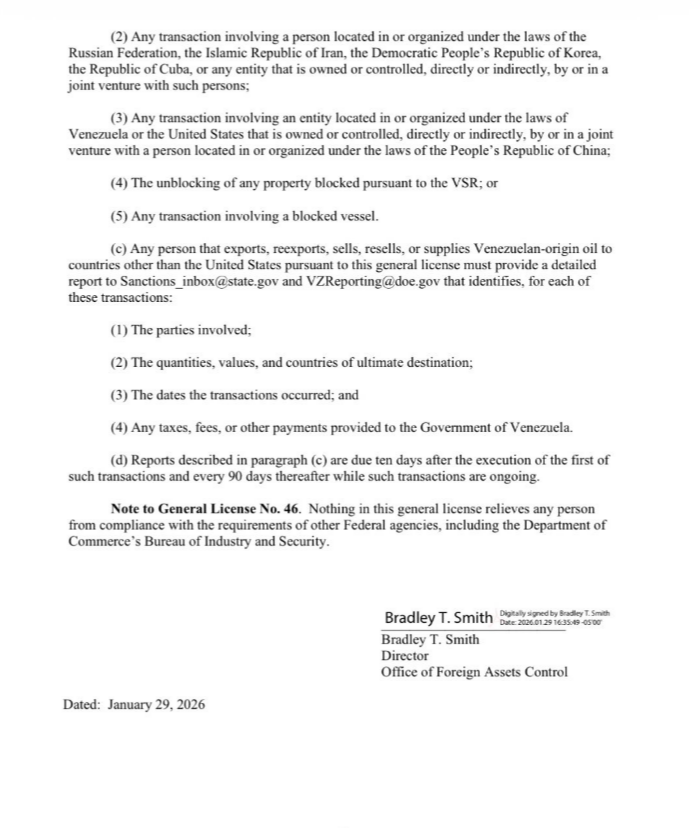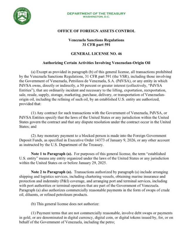 El permiso también establece prohibiciones claras: no se permitirán canjes de deuda, pagos en oro ni acuerdos que Washington considere “no razonables”.