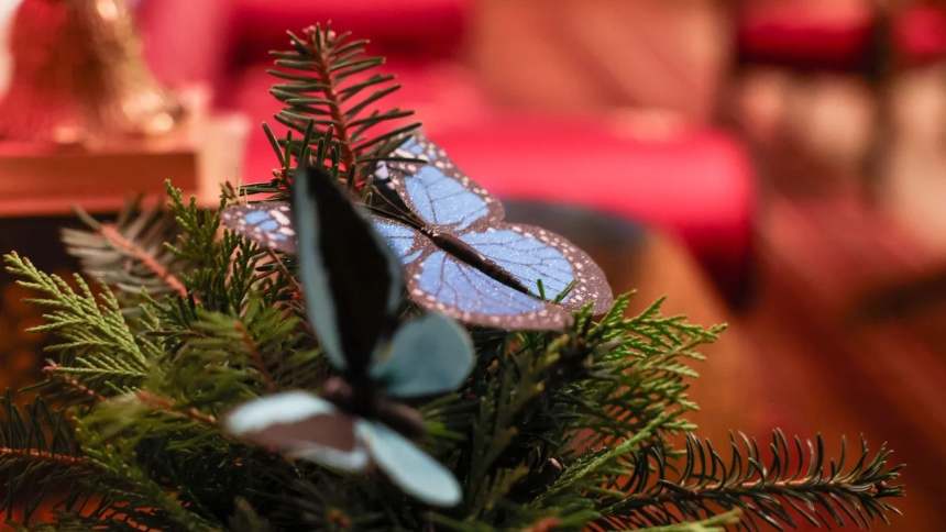 Además, se añadieron elementos simbólicos como 2.800 estrellas doradas. También 10.000 mariposas y 54 kilos de pan de jengibre, que evocan tanto la tradición como la creatividad.