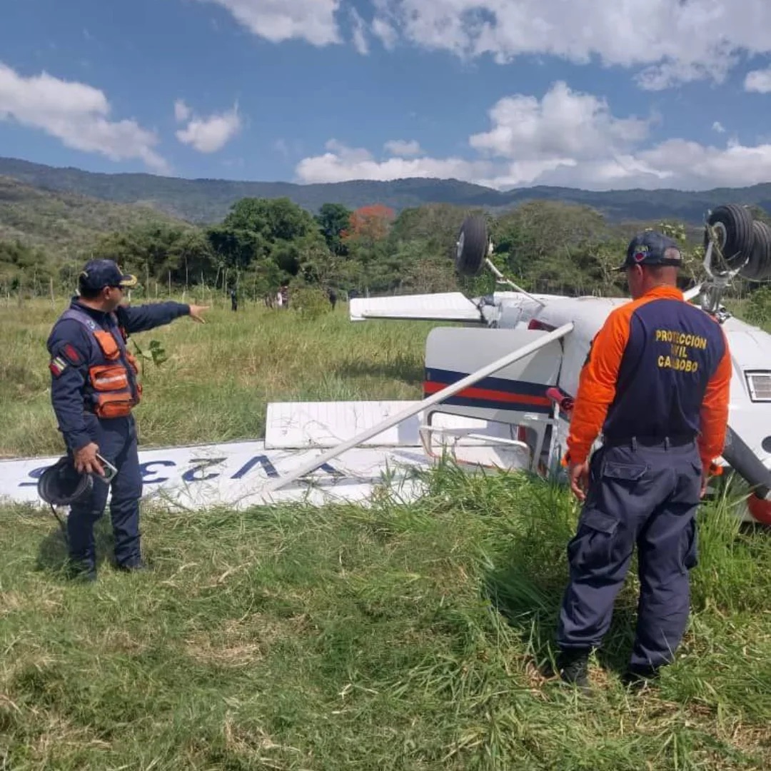 Vidarte publicó una fotografía en la que se aprecia que la avioneta quedó volcada entre la maleza. El accidente se dio detrás de la Manga de Coleo en la parroquia de Canoabo, vía La Sabana.