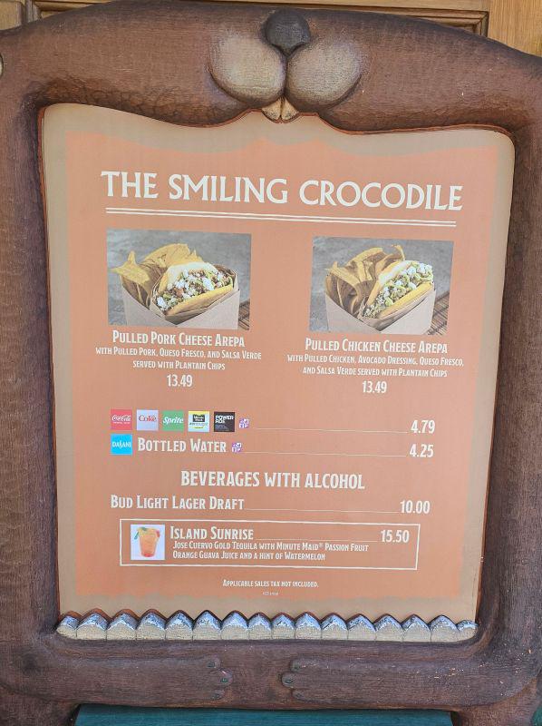 El local The Smiling Crocodile es el encargado de vender al público la arepa criolla. Una de ellas es la de pollo mechado, acompañada con queso y guasacaca. Además, el combo incluye tostones fritos tipo snack y su costo es de 13,49 dólares.