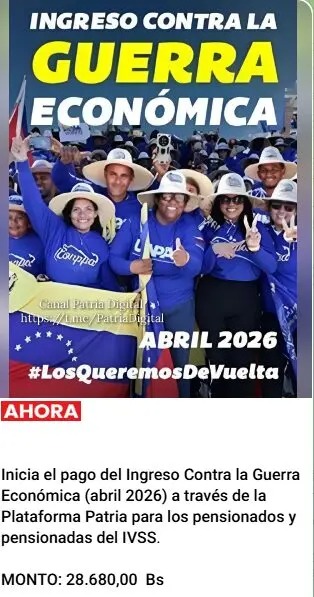 En esta ocasión el beneficio del monto se ubicó en 28.680 bolívares, según los canales oficiales del Sistema Patria, lo que equivale a aproximadamente 59,54 dólares, de acuerdo con la tasa oficial establecida por el Banco Central de Venezuela (BCV).