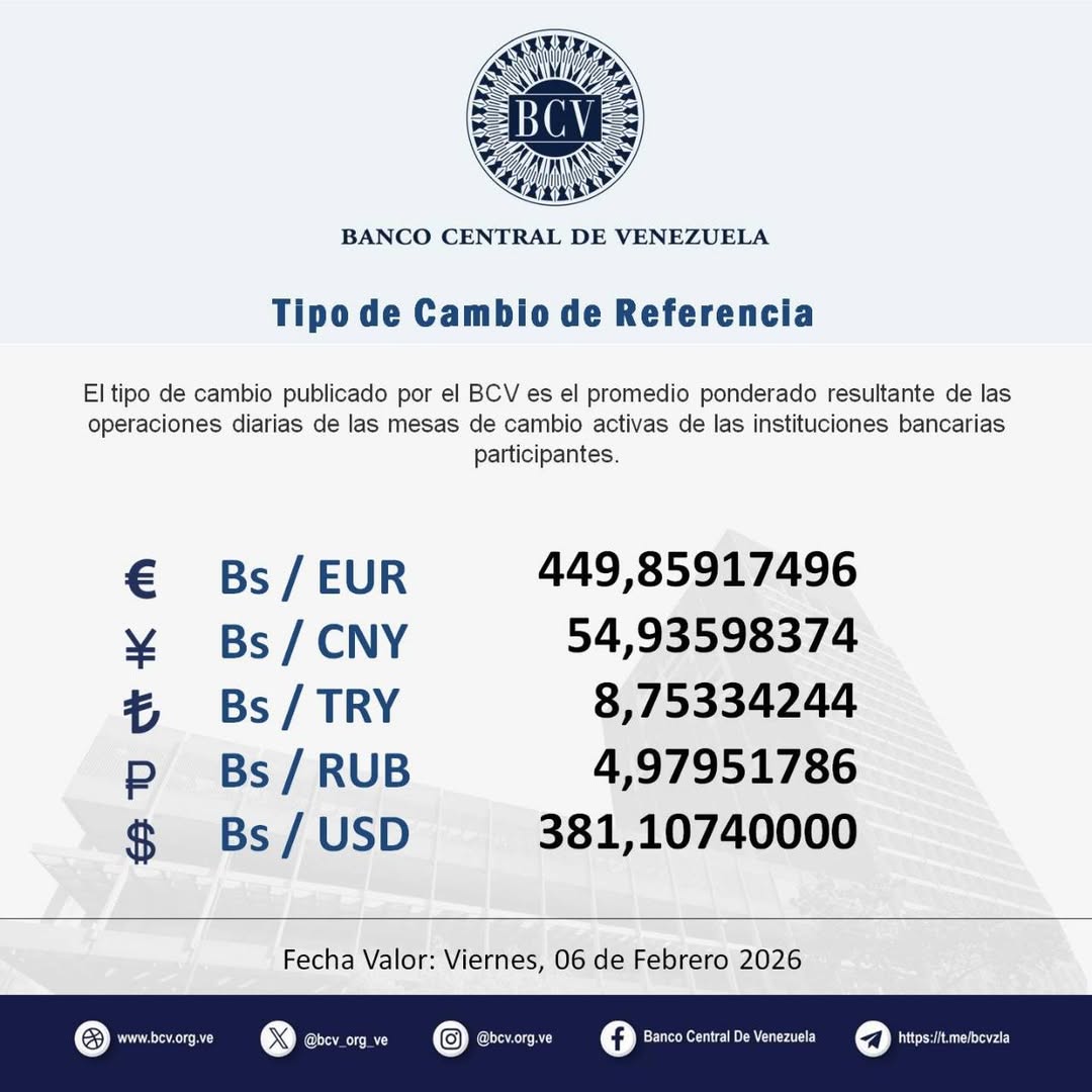 El dólar oficial inició la jornada de este 6 de febrero con tendencia alcista al cotizarse en Bs. 381,11.