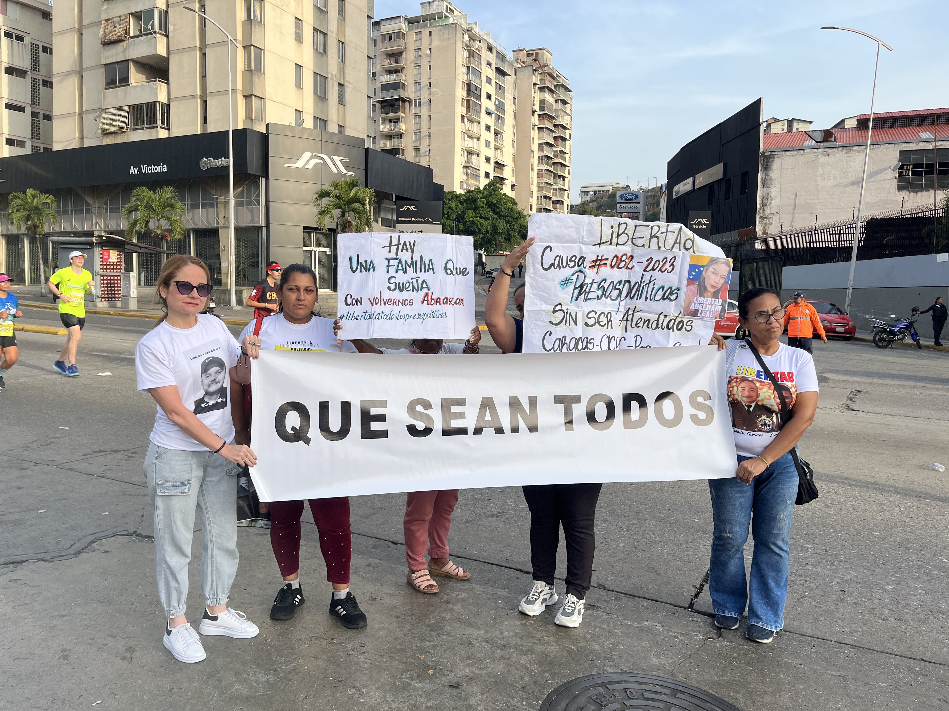 Familiares de presos políticos desplegaron pancartas este domingo 8 de febrero, durante el Maratón CAF que se llevó a cabo en Caracas, para exigir la liberación de cada uno de los detenidos.