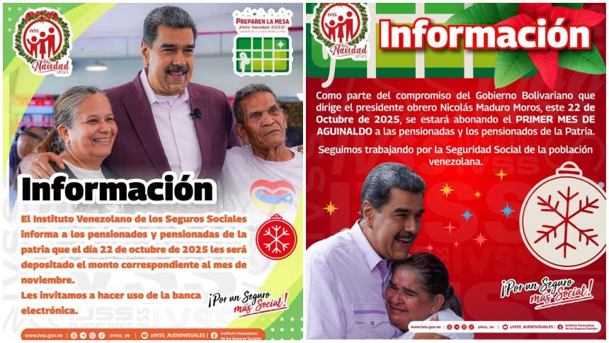 El Instituto Venezolano de los Seguros Sociales (IVSS) informó que este miércoles, 22 de octubre, pagará el primer mes de aguinaldo a los pensionados.